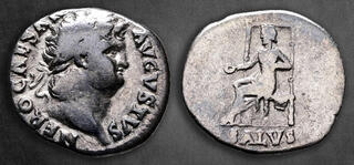 NERO CAESAR AVGVSTVS, laureate head right / IVPPITER CVSTOS. Jupiter seated left on throne, holding thunderbolt and long sceptre.