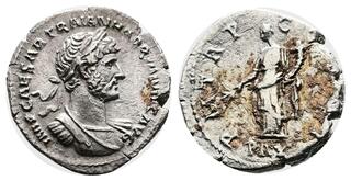 | Lot description: Roman Imperial Hadrian, AD 117-138. Silver Denarius (17 mm, 3.43 g.). Rome mint, struck 118 AD. IMP CAESAER TRAIAN HADRIANVS AVG, laureate head of Hadrian to right, with slight drapery on his left shoulder. Rev. P M TR P COS II / PIE-TAS, Pietas veiled, standing front, head to left, raising her right hand. BMC 82. Cohen 1027. RIC 127. Nice very fine. Attractive bust type with an early portrait. Estimate: 40 EUR Starting price: 30 EUR |