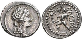 Julius Caesar, 49-44 BC. Denarius (Silver, 18 mm, 2.99 g, 10 h), with P. Sepullius Macer, Rome, first half of March 44. CAESAR [DICT PERP]ETVO Laureate and veiled head of Julius Caesar to right. Rev. P•SEPVLLIV[S - MACER] Venus standing front, head lowered to left, holding Victory in her right hand and long scepter in her left; to right, round shield set on the ground. Babelon (Julia) 50 and (Sepulia) 5. Crawford 480/13. RBW 1685. Sydenham 1074. Bankers' marks on the obverse and minor flan flaws, otherwise, fine.