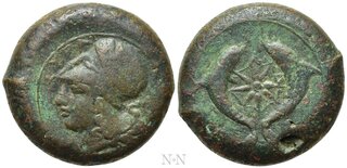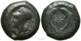 Among the many fabled cities of Greece, Argos claimed to be one of the oldest. Indeed, Homer calls the Greeks 'Argives' in the Iliad, and we may consider this the root for the name Argonaut. During the Bronze Age the territory of Argos incorporated other famous and powerful cities, such as Mycenae and Tiryns, and Argos was still renowned in the 490s B.C. when it began to strike coins. Its first issues were silver drachms and fractions that showed a wolf, symbolic of Apollo Lykios, who was worshipped in the city. The largest Argive coin of this early period, the drachm, shows a wolf in full, whereas triobols show its forepart, and obols show only its head – thus we have a compression of design that co-ordinates with the decrease in denomination. Hemiobols bore the archaic letter heta, and tetartemoria the letter tau. With a few design modernisations and an occasional new type, this system remained intact for perhaps 120 years. In about 370 – soon after the Battle of Leuctra, which reduced Spartan and Theban influence in the Peloponnesus – Argos began to strike larger denomination coins with fresh designs of high artistry. The period c.370-350 represents the artistic peak for the mint at Argos, with several numismatic masterpieces being created. Argos was famous for its sculptors (including Myron, Polycleitus and Phidias' master, Ageladas), and we may presume the mint was able to draw upon a thriving arts community. The two main issues from this period are staters and drachms. Both show on their obverse the head of Zeus' wife Hera, who wears a stephane decorated with palmettes. About six miles outside the city was the Heraeum, where this goddess is said to have been worshipped for thirteen generations before King Agamemnon ruled over Bronze Age Mycenae. Her original temple burned in 423, so the Hera bust on these coins must be based upon the renowned 26-foot statue by Polycleitus which was adorned with gold and ivory. The Hera staters show on their reverse two dolphins swimming in opposite directions, creating a circular pattern. The Hera drachms show Diomedes, the Argive king of Homer's Iliad, advancing cautiously with sword drawn as he brings the Palladium to his city. The dolphins may be a cunning allusion to the Delphic Apollo, who was worshipped at Argos, but perhaps even more likely they reflect the worship of Poseidon based upon two mythological episodes that were etched into the Argive consciousness. In one instance the local river-god Inachus was among those forced by Hera and Poseidon to choose between them for possession of the land; when he chose Hera, Poseidon withdrew the waters. Consequently, as it was explained, the rivers carried water only after a heavy rain. In another episode, Poseidon is said to have created the Springs of Lerna a few miles south of Argos. Apparently, Hera had convinced Poseidon to send back the sea, and the grateful Argives erected a sanctuary to Poseidon Prosclystius ('the flooder') at the point where the tide ebbed.