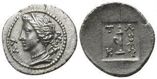 | Lot description: Lycia. Kragos. Lycian League circa 27-20 BC. Quarter Drachm AR 13mm., 0,95g. ΛY; diademed and draped bust of Artemis left, wearing necklace, bow and quiver over right shoulder / T-Λ and K-P flanking quiver within incuse square; to right, winged kerykeion. extremely fine Troxell 129; RPC 3311. |