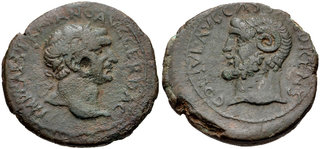 | Lot description: MACEDON, Cassandraea. Trajan. AD 98-117. Æ (23mm, 7.28 g, 6h). Laureate head right / Head of Zeus-Ammon left. RPC III 637; SNG ANS –. Near VF, green patina, edge rough. Rare. From the Belgica Collection. Estimate: 100 USD |