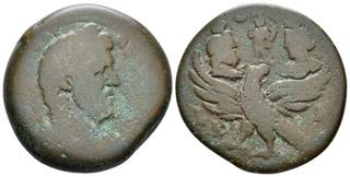 | Lot description: Egypt, Alexandria. Dattari. Antoninus Pius, 138-161 Drachm circa 160-161 (year 24), Æ 30.5mm., 20.48g. Laureate, draped and cuirassed bust r. Rev. Draped busts of Sarapis wearing kalathos, r., and Isis, l., facing each other; between, Harpocrates standing, l., raising finger to lips, holding cornucopia(?); beneath, eagle standing, facing, head, l. (or r.), spreading wings; in field, L-K-Δ. RPC Online 15370 (this coin). Dattari-Savio Pl. 147, 8720 (this coin). Rare. Brown tone, Fine. From the Dattari collection Starting Price: 70 GBP |
