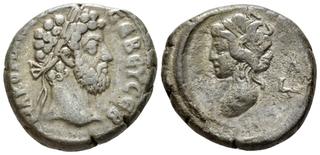 | Lot description: Egypt, Alexandria Commodus, 177-192 Tetradrachm circa 189-190 (year 30), billon 24.10mm., 12.30g. Laureate head r. Rev. Bust of Selene l.; before, crescent and behind, LΛ. Geissen 2252. Dattari 3889. RPC Online 14218. Very Fine. Starting Price: 30 GBP |