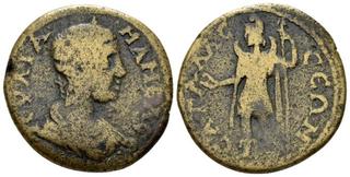 | Lot description: Pisidia, Sagalassus Julia Mamaea, mother of Severus Alexander Bronze circa 222-235, Æ 27mm., 10.36g. Diademed and draped buts r. Rev. Rare, light brown tone and About Very Fine. In addition, winning bids of EEC clients for this coin are subject to a 5% fee on hammer price as a reimbursement for import duty paid to HMRC. Starting Price: 40 GBP |
