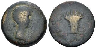 | Lot description: Egypt, Alexandria In the name of Livia, wife of Augustus Diobol circa 9-10 (year 30), Æ 24.60 mm., 11.60 g. Draped bust r. Rev. Modius and torches; in exergue, LΛΘ. RPC 5043. Dattari 69. Rare. Brown tone and About Very Fine. Starting price: 35 GBP |