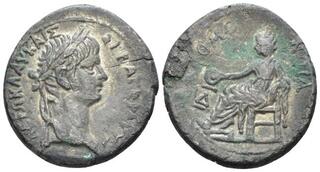 | Lot description: Egypt, Alexandria. Dattari. Nero, 54-68 Tetradrachm circa 57-58 (year 4), billon 26.00 mm., 5.03 g. Laureate head r. Rev. ΟΜΟΝΟΙΑ Homonoia seated, l., holding patera; in l. field, LΔ. RPC 5228.1 (this coin). Dattari-Savio Pl. 8, 238 (this coin). Rare. Nice old cabinet tone, tiny flan crack, About Extremely Fine/Good Very Fine. From the Dattari collection. Starting price: 70 GBP |