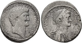 | Lot description: SELEUCIS and PIERIA, Antioch. Mark Antony & Cleopatra VII of Egypt. 36 BC. AR Tetradrachm (26mm, 14.74 g, 12h). Struck circa 36-34 BC. BACIΛICCA KΛЄOΠATPA ΘЄA NЄωTЄP[A], diademed bust of Cleopatra right, wearing earring, necklace, and embroidered dress / ANTωNIOC AVTOKPATωP TRITON TPIωN ANΔPωN, bare head of Antony right. McAlee 174; Prieur 27; RPC I 4094; HGC 9, 1361. Toned, porosity, scratches and deposits, off center obverse. VF. Estimate: 7500 USD |