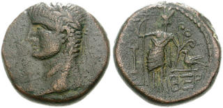 | Lot description: Roman Provincial JUDAEA, Ascalon. Nero. AD 54-68. Æ 23mm (13.56 g, 12h). Dated CY 162 (AD 58/9). Laureate head left / Tyche-Astarte standing left on galley, holding standard and aphlaston; altar to left; dove above ΒΞΡ (date) to right. RPC 4888; Rosenberger 100; Hendin -. VF, brown and green patina, a little porous. From the J. S. Wagner Collection. Estimate: $100 |