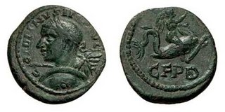 | Lot description: Römische Münzen Römisches Kaiserreich GORDIANUS III. Thrakien, Deultum. AE-19 mm. Belorbeerte Büste mit Speer und Schild l. Rs: Eros reitet r. auf Delphin. Jurukova -, vgl. 311 (Delphin ohne Eros). Schöne grüne Patina. Etwas knapper Schrötling. R vz-ss Estimate: 100 EUR |