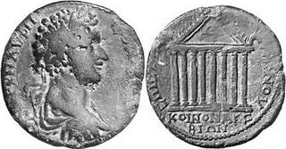 | Lot description: KAISERZEITLICHE PROVINZIALPRÄGUNGEN LESBOS KOINON Objekt-Nr.: 1373 Commodus, 177 - 192 n. Chr. AE (14,16 g.), Vs.: AUT K M AURH - KOM[...], Büste mit Panzer, Pamludamentum, Lorbeerkranz und leichtem Bartansatz r. Rs.: EPI S[TRA SEPT]TRIANOU / KOINON LES/BIWN, achtsäuliger Tempel. Dunkelgrüne Patina, fast ss Estimation : € 150,00 |