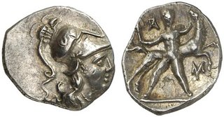 | Lot description: Antike Münzen GRIECHISCHE MÜNZEN KALABRIEN - Taras(Tarentum) Zeit des Hannibal, 212 - 209 v. Chr.. Diobol, 302-228 v. Chr. Athenakopf / Herakles mit Keule bändigt das menschenfressende Pferd des Diomedes. Vlasto 1448; SNG ANS 1471 1,11 g vz Starting Price: 150 EUR |