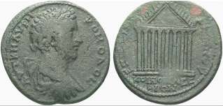| Lot description: SLG. J. - P. RIGHETTI, Teil III LESBOS KOINON VON LESBOS. No.: 384 Schätzpreis/Estimate: EUR 300,- d=35 mm Commodus, 180-192. Grossbronze. Drap., gep. Büste mit L. n. r. Rv. EPI E(ohne Mittelstrich)TR POM - E(ohne Mittelstrich)EPTWRIANOU / KOINON LEE(ohne Mittelstrich)/BIWN Frontseite des achtsäuligen Bundestempels, Giebel mit reichem Akroterenschmuck. 21,95 g. BMC 170, 6. SNG Cop. 336. SNG München 692. Grüne Patina. Sehr schön |