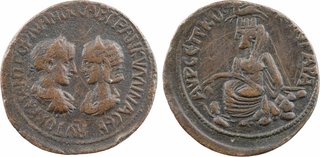 | Lot description: Mésopotamie, Singara, Gordien III et Tranquilline, grand bronze ou tetrassaria, 242-244 A/AUTOK K M ANT GORDIANON SAB TRANKULLINA SEB Bustes affrontés de Gordien III lauré et de Tranquilline diadémée R/AUR CEP KO - L SINGARA La Tyché de Singara tourelée et assise à gauche ; un dieu-fleuve à ses pieds à gauche ; au-dessus, un Sagittaire bondissant à gauche Bronze 31,3 mm 26,32 g 6 h TTB, R , GIC.3804 Cet exemplaire provient d'une vente, T. Parsy expert, du 8 avril 2010 N° 260 (320 €). Singara en Mésopotamie formait un avant poste de la frontière orientale de l'empire, avant le royaume sassanide. Elle avait été élevée par Septime Sévère au rang de colonie romaine, comme en témoigne la légende de revers : Colonia Aurelia Septimia Singara. Très bel exemplaire de ce bronze, lourd, et recouvert d'une patine marron Estimate: 350 EUR Starting price: 230 EUR |
