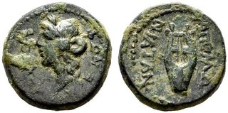 | Lot description: GRIECHISCHE MÜNZEN ILLYRIA Apollonia (D) Bronze (4,83g), Magistrate Moschou(...) und Xenoph(...), ca. 229-100 v. Chr. Kopf des Apollon mit Lorbeerkranz / Lyra. SNG Cop 415, BMC 62.80. f.s.sch. Starting Price: 40 EUR |
