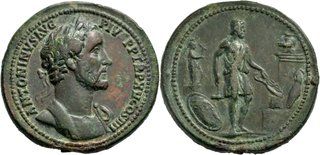 | Lot description: Kaiserliche Prägungen Antoninus Pius, 138-161. Bronze-Medaillon 151/152, Rom. Büste / Vulcanus mit Hammer und Beinschiene an Amboss, dahinter Statue der Athena mit Victoria-Statuette und Schild auf Säule, an der ein zweigeteilter Schild (Darstellung oben: Kapitolinische Wölfin, unten: zwei Gestalten an Altar) lehnt; hinter dem Amboss Postament mit Helm und einer weiteren Beinschiene. C. 1155 Gnecchi, Tf. 52, 7 40.98 g.; Braungrüne Patina Selten Sehr schön 1890 bei den Bauarbeiten für die Kölner Hauptpost gefunden (vgl. Nr. 306). Der Rand des Schrötlings weist verschiedene Bohrungen auf. Über dem Kopf des Kaisers war wohl eine Öse eingelassen; unten und an den Seiten befand sich jeweils ein silbernes Flügelpaar, das mit Eisenstiften an dem Schrötling befestigt war. Die Flügel und auch der Henkel sind nicht mehr erhalten. Der untere Befestigungsstift steckt noch im Schrötling. Ebenfalls in Köln wurde ein zweites Medaillon dieser Art gefunden, das sich heute im Rheinischen Landesmuseum in Bonn befindet. Dieses Stück weist eine ähnliche Randbeschädigung durch einen abgenommenen Ring auf. Siehe H. J. Lückger, in: Frankfurter Münzzeitung, 1931, S. 225-226 (m. Tf. 3). The piece was found in 1890 during the renovation of the central post office at Cologne. The rim shows several piercings, where possibly a ring and three silverwings, which are now missing,were attached to the piece. Another piece with similar damages to its rim is today in the Rheinische Landesmuseum Bonn (cfr. H. J. Lückger in Frankfurter Münzzeitung 1931, S. 225-226 and pl. 3). Estimate: 7500 EUR |