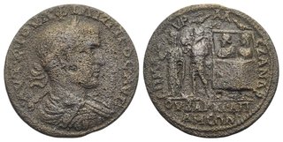 | Lot description: PHRYGIEN. Apameia (Kibotos). Philippus I. Arabs (244 - 249 n. Chr.). Bronze. Vs: Büste mit Lorbeerkranz, Paludament und Panzer rechts. Rs: Noah und seine Frau in der kastenförmigen Arche mit der (hier nicht erkennbaren) Aufschrift [ΝΩΗ] nach links stehend, darunter Wellenlinien; rechts oben auf der Arche ein Rabe nach links sitzend; in der linken Bildhälfte Noah und seine Frau nach dem Verlassen der Arche mit zum Dankgebet erhobenen Händen nach links stehend, darüber Taube mit Olivenzweig in den Krallen nach rechts fliegend. BMC 182. SNG von Aulock 3510. Hendin, Biblical Coins, S. 295 und Taf. 32, 922. Raue Oberfläche, fast sehr schön / sehr schön. Sehr selten. 18,55 g 33 mm Die phrygische Stadt Apameia mit dem Beinamen „kibotos" („Kiste") - eine Anspielung auf ihre Rolle als bedeutender Warenumschlagsplatz - zeigt mit dieser Prägung, daß sie die biblische Geschichte von der Arche (in der griechischen Bibelübersetzung als „kibotos" bezeichnet), die Noah gebaut hatte, um der Sintflut zu entkommen, in ihren Gründungsmythos aufnahm und damit die große, seit hellenistischer Zeit bestehende jüdische Gemeinde der Stadt integrierte. Für die Bürger der Stadt war Apameia der Ort, an der Noah mit seiner Arche landete und wieder Land betrat: Auf dem Revers erkennt man auf der rechten Seite Noah und seine Frau in der Arche, wie sie zunächst einen Raben und dann eine Taube aussenden, um den Stand der Überflutung zu überprüfen, und auf der linken Seite, wie das wieder auf dem Festland stehende Paar Gott mit einem Gebet für seine Rettung dankt - die zeitlich aufeinander folgenden Ereignisse sind in einem Münzbild zusammengefasst. Starting Price: 3000 EUR |