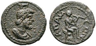 | Lot description: RÖMISCHE PROVINZIALPRÄGUNGEN PHRYGIEN APAMEIA Pseudo-autonom, Zeit des Commodus AE Kleinbronze (3,46g). D. Buste drapé de Sarapis à dr. , un calathos sur la tête. R. Dieu-fleuve Marsyas assis sur un rocher, à dr. , et jouant de la double-flûte. BMC, Phrygia, p. 91. 130. SNRIS Apamea 03. Le 2e ex. connu. Schwarze Patina, ss Provenienz: Ex Gorny & Mosch 176 [2009], 1702. Estimate: 60 EUR |