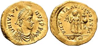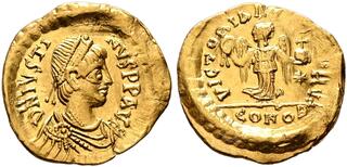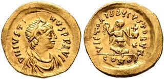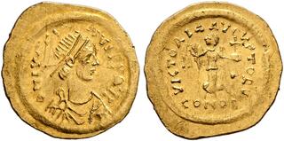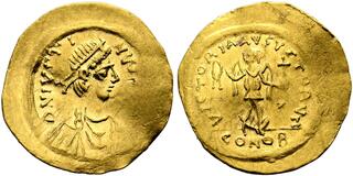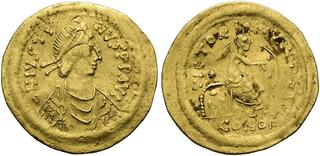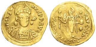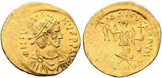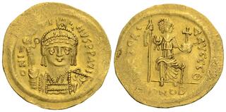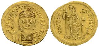 Leichter Solidus zu 22 Siliquen (Gold). 567 - 578 n. Chr. Constantinopolis (?).