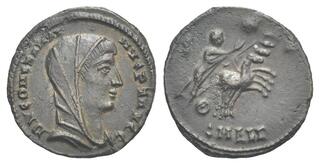 Divus Constantine I, died 337. Follis. Alexandria. Circa AD 347-348 (Bronze, 16.42 mm, 1.64 g). DV CONSTANTI - NVS PT AVGG, Veiled bust right. Rev. VN-MR to left and right of Constantine shrouded, standing front, looking right; in exergue, SMALB. RIC VIII, 32. Cohen 716. Good Very Fine.