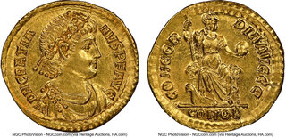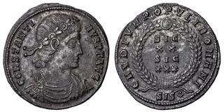 NGC AU | Roman Empire, Constantine II (AD 337-340), AR Heavy Miliarensis, struck 336-340, Siscia, CONSTANTI-NVS P F AVG, laureate and rosette-diademed, draped and cuirassed bust right, rev. GAVDIVM POPVLI ROMANI, SIC/XX/SIC/XXX within a wreath, SIS [dot on crescent] in exergue, 5.16g (RIC VIII 47; Portable Antiquities Scheme YORYM-11807E this coin), dark toning with some areas of lighter silver; wonderful surfaces, especially for a field find; mere hints of wear, with the engraver's centring p... | 4 Dec 2025 | Unsold | |