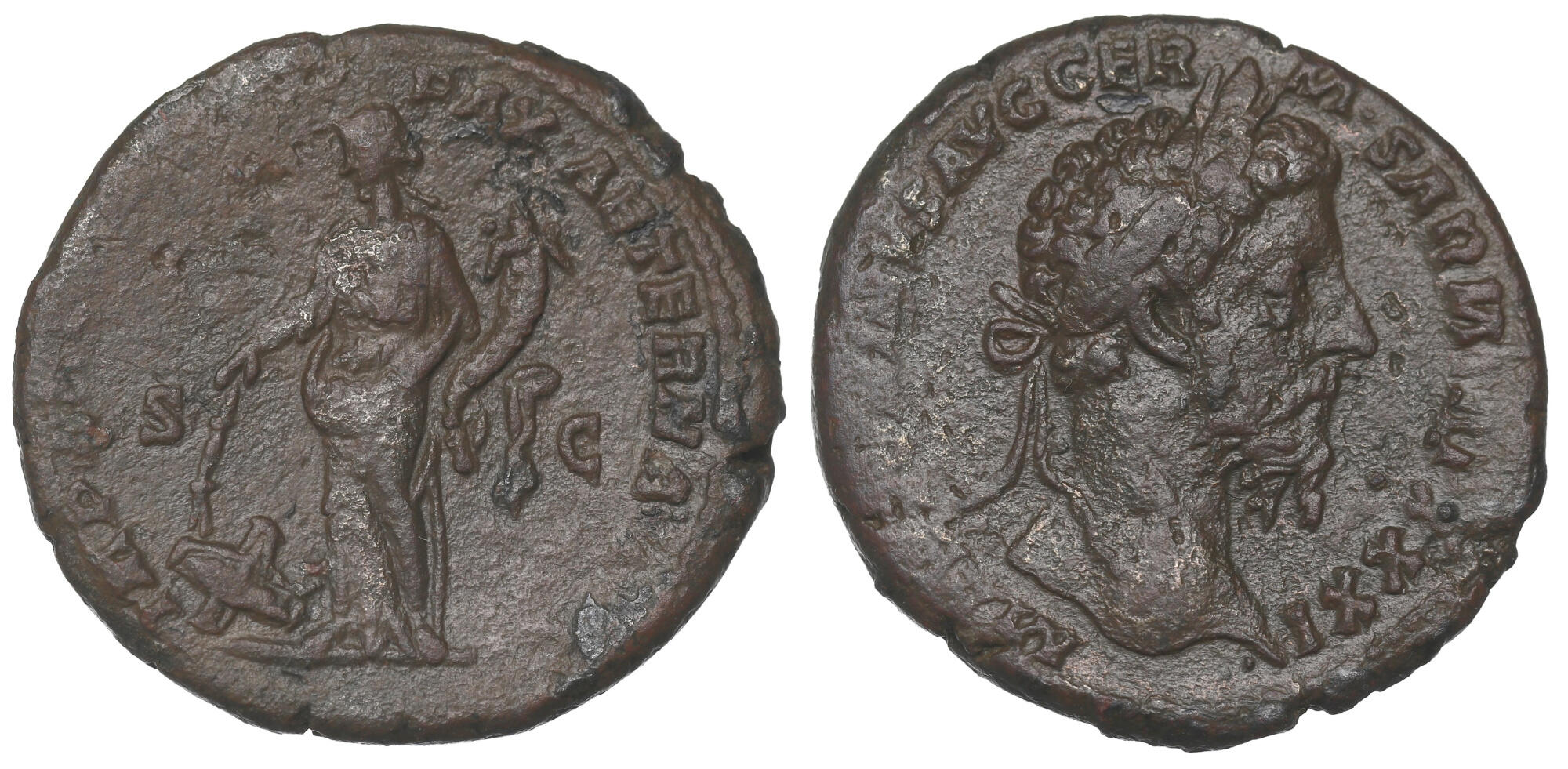 CRISPINA – AVGVSTA Draped bust r. Rev. V – E – NVS Venus standing l., holding apple in r. hand and drawing up fold of drapery on l. shoulder. C 35. BMC Commodus 44. RIC Commodus 286a.