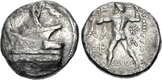 Beamter Menippos.Tetradrachme. 350-340. Biene. Rs: Hirschprotome r. mit umgewendetem Kopf, dahinter Dattelpalme.