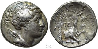 Beamter Kyniskos.Tetradrachme. 370-360. Biene. Rs: Hirschprotome r. mit umgewendetem Kopf, dahinter Dattelpalme.