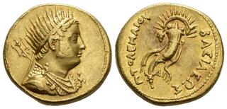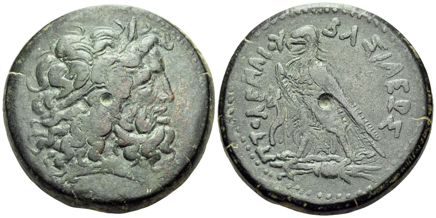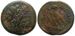 couronne et un long sceptre. Dans le champ, BAΣIΛEΩΣ