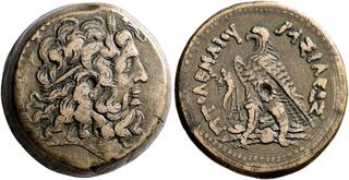 Tetradrachme, Jahr 208 oder 207. Rev. Stehender Zeus.