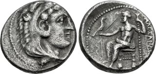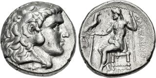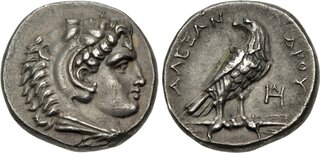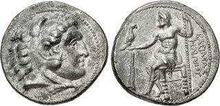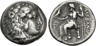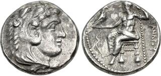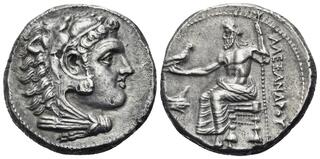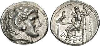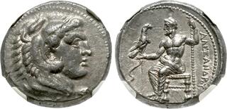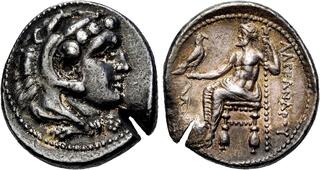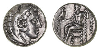 Macedon, Kingdom of, Alexander III, (336-323 B.C.), silver tetradrachm, (17.16 g), Salamis Mint, issued 332/1-323 B.C. under Nikokreon, obv. head of Herakles to right wearing lion skin with dotted border, rev. Zeus seated on throne to left, eagle in outstretched hand, to left a bow, [A]LEXANDR[OU] to right, (cf.S.6713, Price 3139, Zapiti & Michaelidou 5-6, Newell, Some 7). Lightly toned, compact flan, good very fine and scarce.