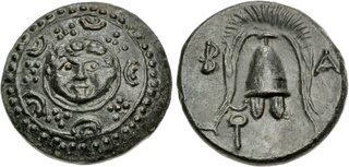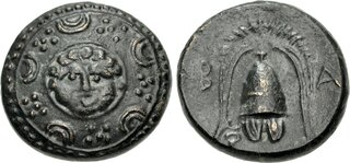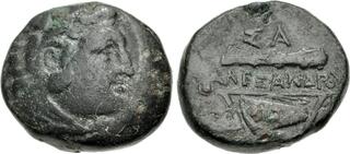 Head of Heracles r., wearing lion skin. Rev. Zeus Aëtophoros seated l.; rudder in left field, T below throne. Zapiti & Michaelidou 29. Price P130 corr. (T not K).