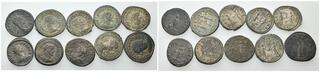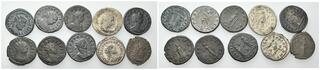 Probus, 276 - 282. Lot 10 x Antoniniane, darunter 5 x CLEMENTIA TEMP; 1 x FELICITAS SAECVLI; 1 x FIDES MILITVM; 1 x CONCORD MILIT; 1 x RESTITVT ORBIS sowie 1 x AEQVITAS AVG. (10x) 10 Stücke / 10 pieces. Verschiedene Erhaltungen / Various conditions.