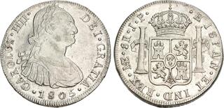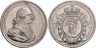 | Lot description: MEXICO, Colonial. Carlos IV, king of Spain, 1788-1808. Proclamation Medal 1790 (Silver, 46 mm, 50.50 g, 12 h), on the homage paid by the city of Guanajuato. By G. A. Gil. CARLOS✱IIII✱REY✱DE ESPAÑA✱Y✱EMPERADOR✱DE LAS✱YNDS✱ Uniformed bust of Carlos IV to right. Rev. FUE✱PROCLAMADO✱POR✱LA✱NOBLE✱CIUDAD✱ - ✱DE✱GUANAXUATO✱EN✱25✱DE✱DIEZEMBRE✱DE✱1790✱ Crowned coat of arms of Guanajuato, standing figure of Faith in center. Fonrobert -. Grove C-73. Medina 163. Vives 124. Lightly toned. Minor marks, a flan fault on the obverse and small edge nicks, otherwise, good very fine. Ex Leu 18, 2 June 2025, 1185. Starting price: 100 CHF |