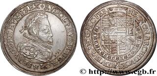 Obverse description : Grand buste lauré de Rodolphe II, drapé et cuirassé à droite avec le grand col fraisé et le collier de l'ordre de la Toison d'or ; devant le buste 1606