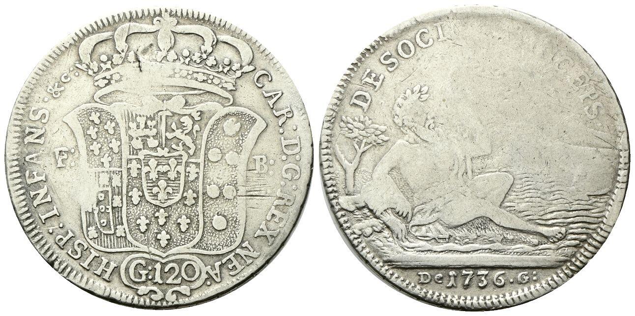 Carlo di Borbone, 1734-1759. Piastra da 120 Grana 1736 - I Tipo.