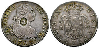 | Lot description: HANOVER. George III. 1760-1820. AR Dollar. Struck 1797. Oval countermark of George III on a Lima mint pillar type 8 Reales dated 1795 (LIMÆ) IJ 8 Reales. Bull 1858; ESC 133; SCBC 3765A. Iridescent toning with underlying luster. In NGC encapsulation 8409906-015, graded MS 62, c/s: UNC Strong. In the late 18th century, the circulating coinage in Britain was in a pathetic state. Counterfeit coins, both in copper and silver, were the rule, rather than the exception. The Royal mint, rather than competing with the flood of false issues, simply shut its doors. In 1788, industrialist Matthew Boulton stepped in to attempt to reform the copper coinage where the government would not. A wealthy industrialist and partner of the steam-engine inventor James Watt, Boulton had made his fortune manufacturing other small metallic objects. Using the steam technology at his disposal, he created the first modern mint at Soho in Birmingham. Yet Boulton was initially unable to obtain a patent to strike coinage and instead opened his mint to merchants. The vast majority of provincial tokens struck in England at this time originated from the Soho mint. Meanwhile, the Bank of England endeavored to stabilize the silver coinage. Taking Spanish eight reales coins, they stamped on them a small image of King George, valuing them at a dollar of five shillings. This simple solution did not fare well with the public, as they were extremely easy to counterfeit. The failed issue spawned a popular nursery rhyme, "The Bank to make their Spanish dollars pass/Stamped the head of a fool on the head of an ass." The Bank soon turned to Boulton and his steam presses. By 1805, fully struck dollars from the Soho mint could be seen in change. Estimate: 1500 USD |