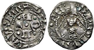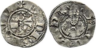 Roma. Grosso (8 June-10 August 1414), AR 2.56 g. +: LADISLAVS:REX:ETC' Arms of Anjou-Durazzo. Rev. +: SANCTVS: keys in saltire :PETRVS: blindfolded head l. (unknown mintmaster): Large keys in saltire. Muntoni IV, 1. Berman 265. MIR 273 (this coin illustrated).