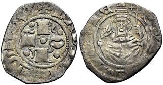 This grosso is without a doubt the silent witness of one of the most troubled periods of the Papacy's history and, consequently, of Italian and European history. The Western Schism , the wars for the domain of various Italian territories and, especially, the kingdoms of Naples and Sicily, the struggle between the big feudal lords' families, the continuous riots of the Roman population, made the Holy See grow more precarious and confused. Between 1413 and 1414 Ladislas of Durazzo, king of Naples, made Nicolo de' Diano (whom he nominated senator of the Urbe) strike these coins off in Rome while the City was briefly occupied. At the same time Antipope John XXIII fleed because he was abandoned by Louis II of Anjou, who. had previously brought him there from Bologna in 1411. On his flags Ladislas (who had imperial aims) inscribed the motto "Aut Caesar aut nihil" which was later assumed by Cesare Borgia, il Valentino, natural son of Alessandro VI.