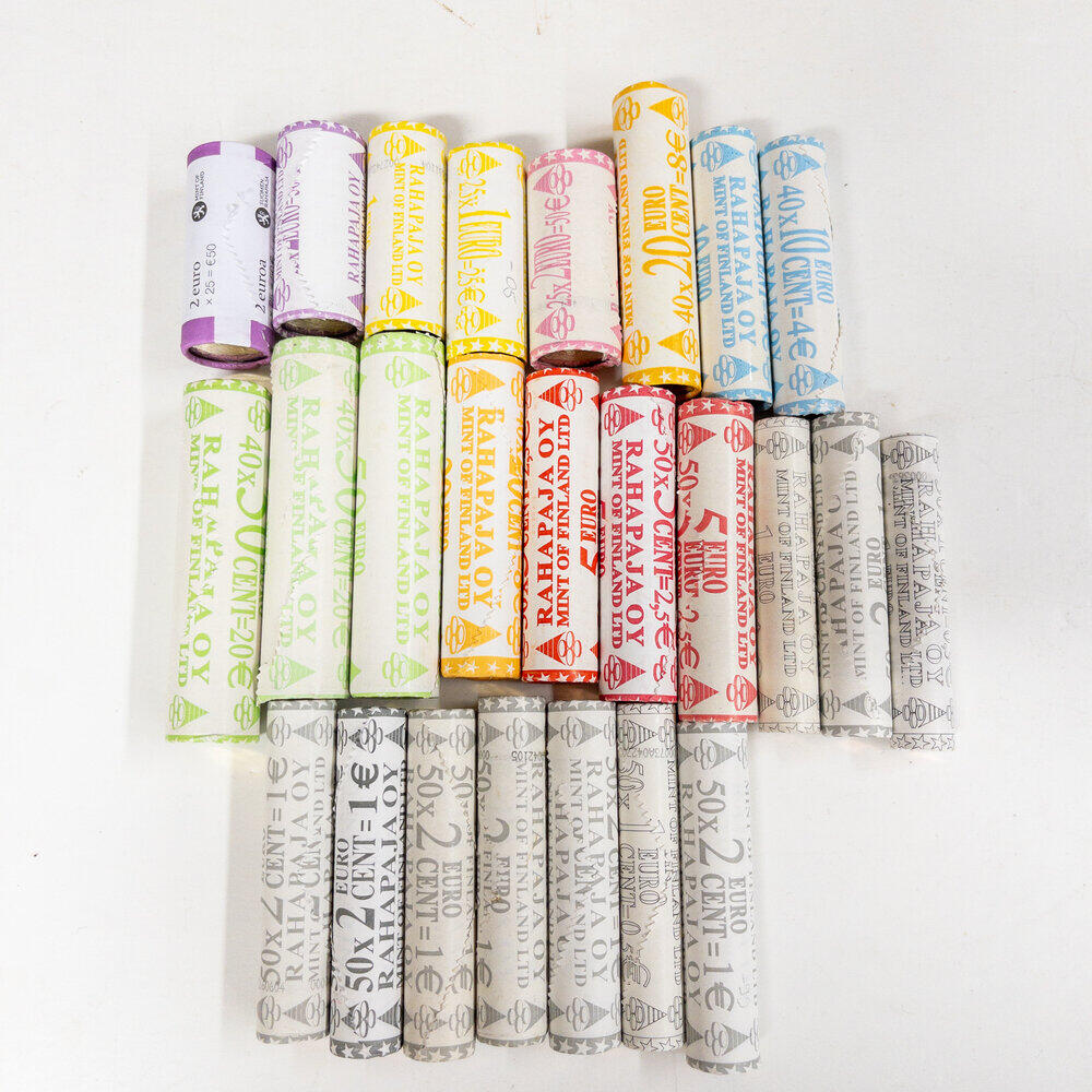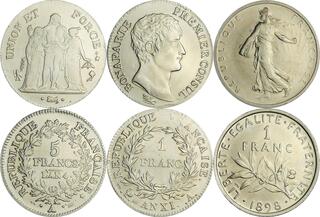 | Lot description: FRANCE, Cinquième République (1959-), lot de 26 proof sets: 1999 (franc), 1999 (5, euro), 2000 (5), 2001 (5), 2002 (5), 2004, 2005 (3), 2009. Estimate: 250 EUR |