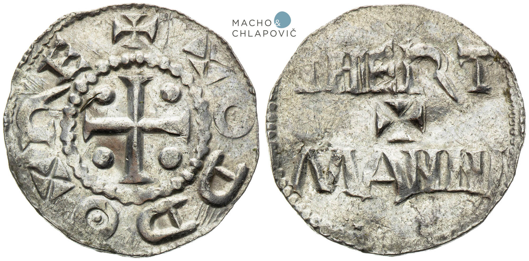 | Lot description: Germany. European Middle Age. Denar. Otto III. Dortmund. . Remains of mint lustre in the fields. Wavy. Deutschland. Europäisches Mittelalter. Denar. Otto III. Dortmund. . Reste von Prägeglanz in Feldern. Gewellt. Německo. Evropský středověk. Denár. Otto III. Dortmund. . Zbytky ražebního lesku v plochách. Zvlněný. Ag, Berghaus 2 a., Dannenberg 743, about EF / about EF Starting price: 40 EUR |