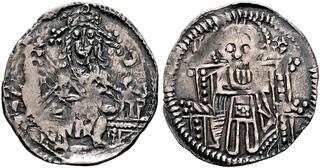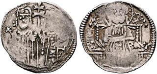 | Lot description: SERBIA. Stefan Uros V, as tsar, 1355-1371. Half Dinar (Silver, 16 mm, 0.55 g, 5 h), 1355-1371. Φb Zb ('Stefan Tsar') Stefan Uroš V enthroned facing, crowned, holding cross-tipped scepter in his right hand. Rev. Nimbate bust of Christ facing, raising his right hand in benediction; to left and right, [IC] - X[C]. Jovanovic (SMC) 12-43.2. Nicely toned. Some areas of weakness and minor doubling, otherwise, very fine. Starting price: 25 CHF |