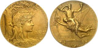IIIe République (1870-1940). Médaille, prix de l'Exposition Universelle de Paris par J. C. Chaplain, Flan mat 1900, Paris. PCGS MS65 (50526751).