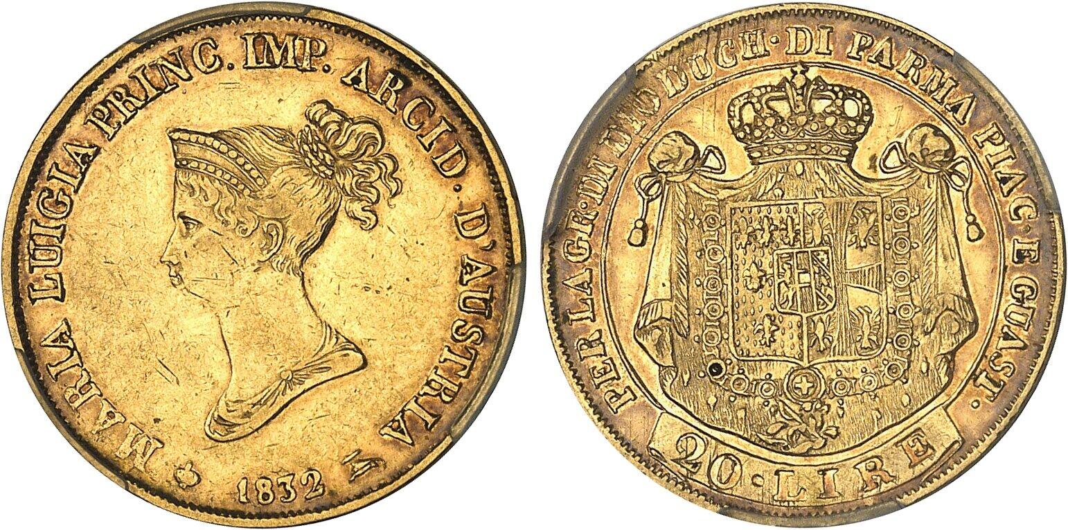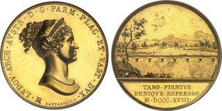 Parme, Marie-Louise (1815-1847). Médaille d'Or, construction du pont sur le fleuve Taro, par G. A. Santarelli, Frappe spéciale (SP) 1818, Florence. PCGS SP64 (51879659).