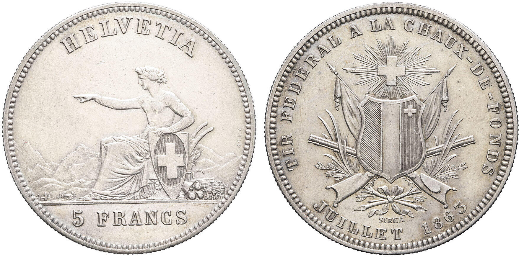 Av. HELVETIA. Buste d'Helvetia à gauche avec collier d'edelweiss et mèche flottante.