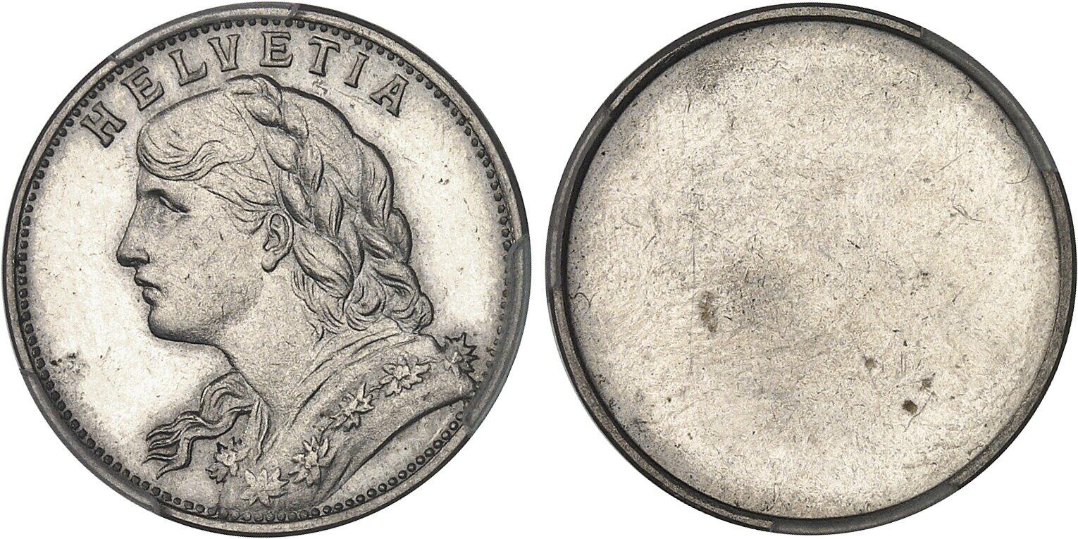 Confédération Helvétique (1848 à nos jours). Essai uniface de 20 francs, pour réduction de la tête d'Helvetia, en nickel, Frappe spéciale (SP) ND (1909), Berne. PCGS SP64 (1930-31) (50994228).