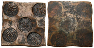 | Lot description: Sweden Sweden. Frederick I (1720-1751). Plate coin 1/2 Daler 1742, Avesta Miedziana płyta ostemplowana znakami królewskimi - nominał 1/2 Daler.Rzadka pozycja.Wymiary: 96 x 98 mm. Details: 419,15 g Cu Condition: 2-/3+ (EF-/VF+) Literature: SM 299 Starting price: 1000 PLN |
