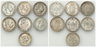 | Lot description: Sweden Sweden, Austria, Hungary 2 crowns, 1 florin, 1 forint 1860-1912, set of 7 Monety w stanie od 3+ do 4. Details: 81,00 g Ag Condition: 3+/4 (VF+/F) Starting price: 150 PLN |