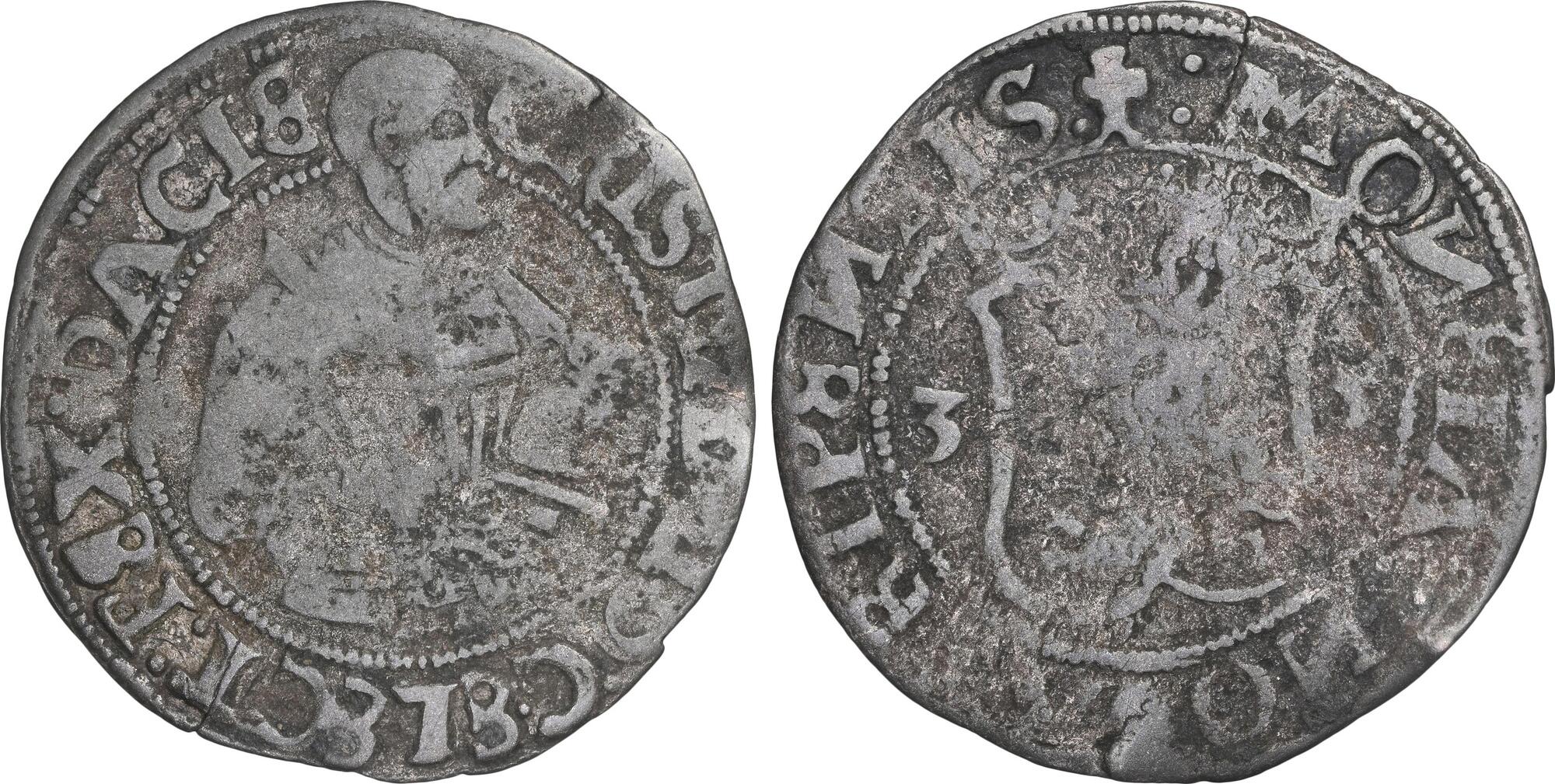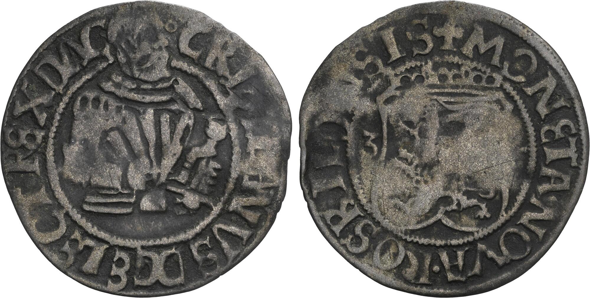 | Lot description: DENMARK. 4 Skilling, 1535. Roskilde Mint. Christian III. NGC EF Details--Cleaned. Galster-99; Sieg-11; Schou-227; Bruun-4218. Weight: 2.55 gms. Strong details and silvery color. Among the last coins struck at Roskilde by Christian III to fund his troops on his way to take Copenhagen during the Count's Feud (1534-36). From the L.E. Bruun Collection. Ex:Joh. G. Guildal Collection (Private Sale - 1918); later published by the Danish Numismatic Society. Estimate: 100 - 180 |