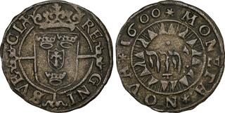 | Lot description: SWEDEN. Öre, 1600. Stockholm Mint. Karl (IX) as Lord Protector. NGC EF Details--Environmental Damage. KM-8; SM-22; Delzanno-26; Bruun-11671. Weight: 2.64 gms. Type with radiant sun around Hebrew letters which stand for "Jehovah", as spelled in the Old Testament, when combining the Hebrew vowels of 'Adonai'("My Lord") with the name 'YHWH' (Yahweh). From the L. E. Bruun Collection. Ex: Countship of Brahesminde Collection (Private Sale - 1922). Estimate: 80 - 120 |